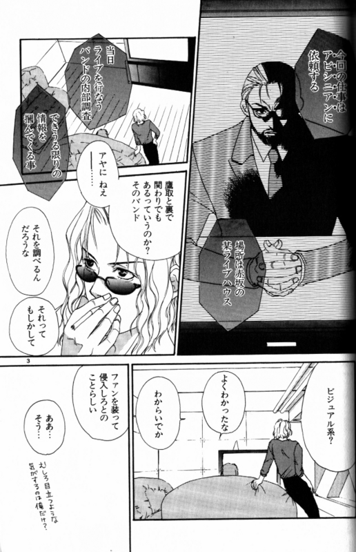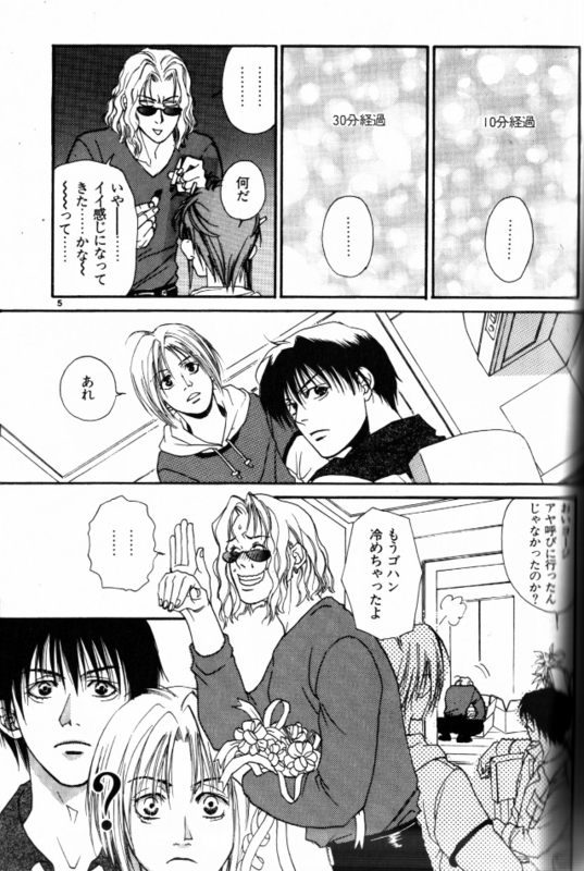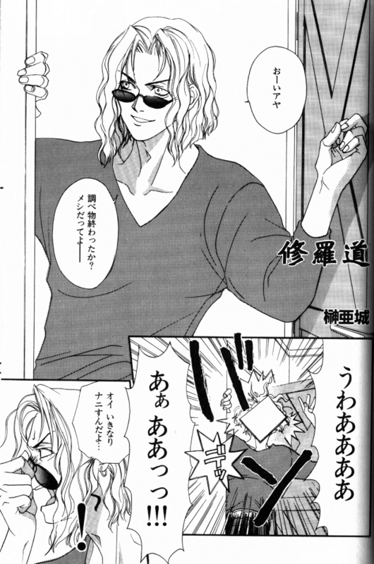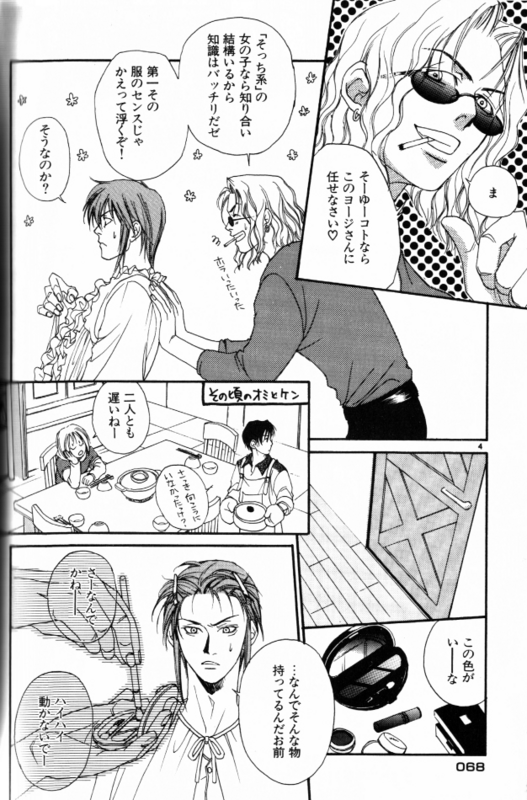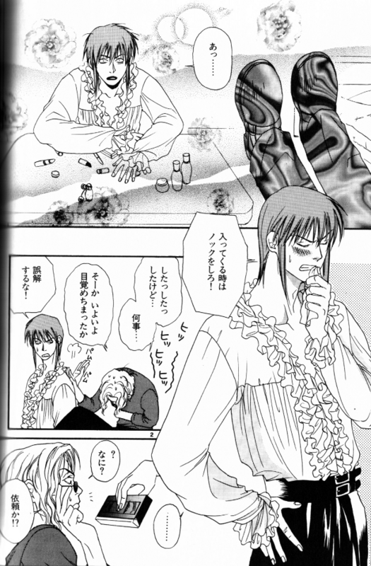 Plus, I actually managed to finish the theme off this time round. (Those doujinshi were such a good buy.) I knew there had to be more images of Ken sleeping and being upset out there somewhere. Though I admit I did have to get a bit creative with my interpretation of some of the moods, and some I freely admit to using simply because I thought the picture was pretty. 'Yeah, that one could be counted as 'accomplished, Ken's killed someone, it's his job, I'll go with that. And arranging flowers is about as artsy as he gets...'